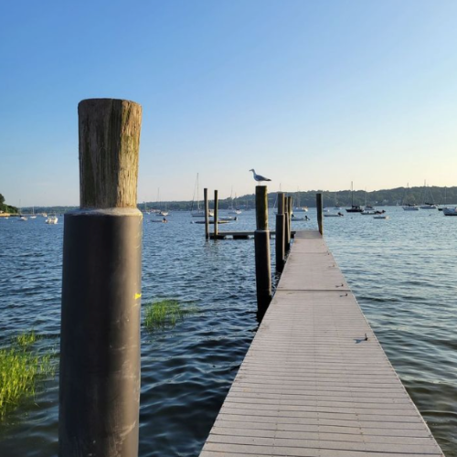 Mercadante Beach at Garvies Point in Glen Cove offers a serene, resident-only sandy stretch perfect for dog-walking and fishing.
